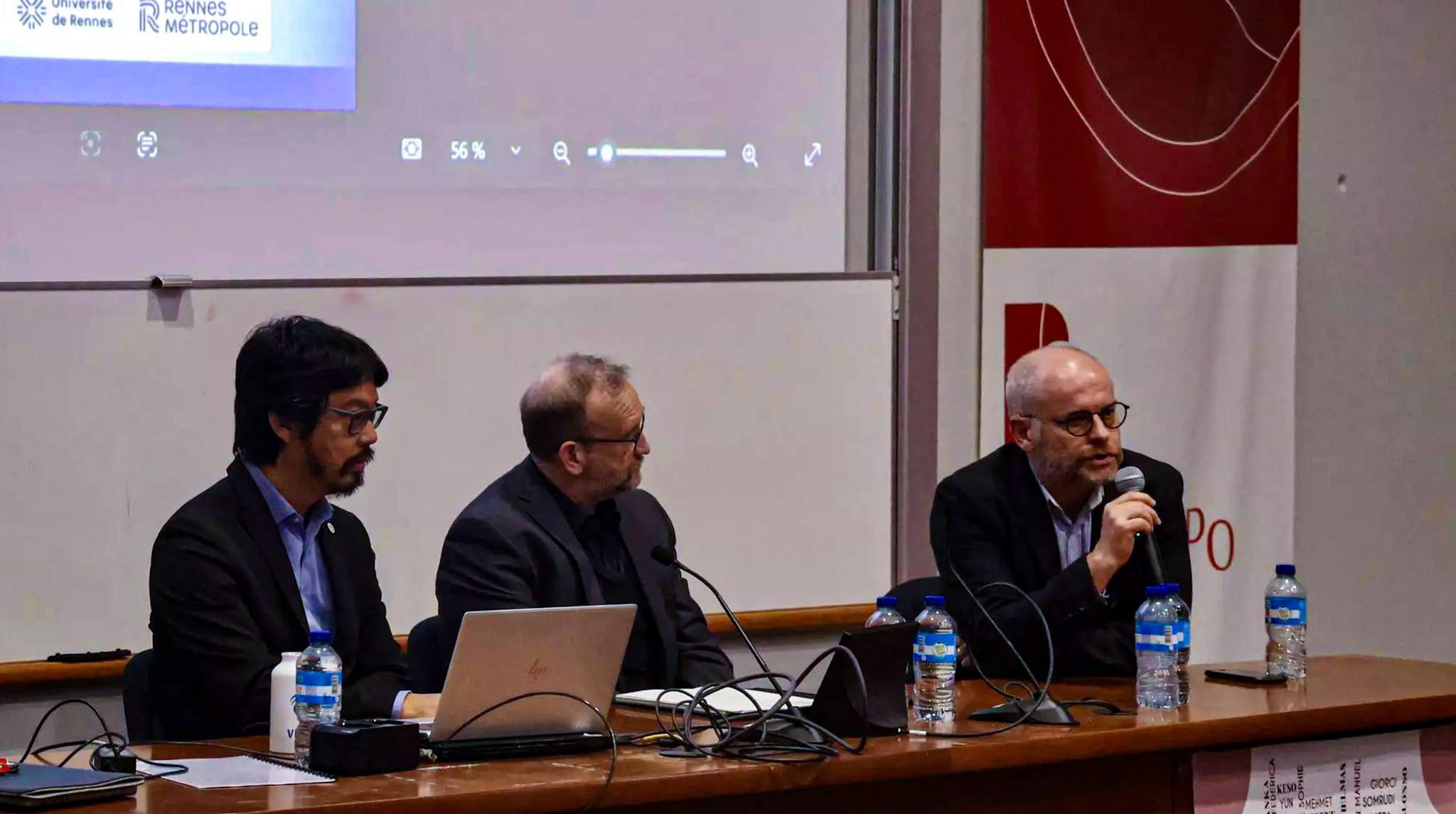 Pierre BEUST, professeur d’informatique à l’Université de Rennes, Olivier Wong-Hee-Kam, vice-président en charge du numérique pour l’Université de Rennes et Josselin Kerviche, directeur des Services Numériques pour les collectivités de Rennes Métropole et Ville de Rennes ont pris part aux discussions sous la modération de Mickaël Salmon.