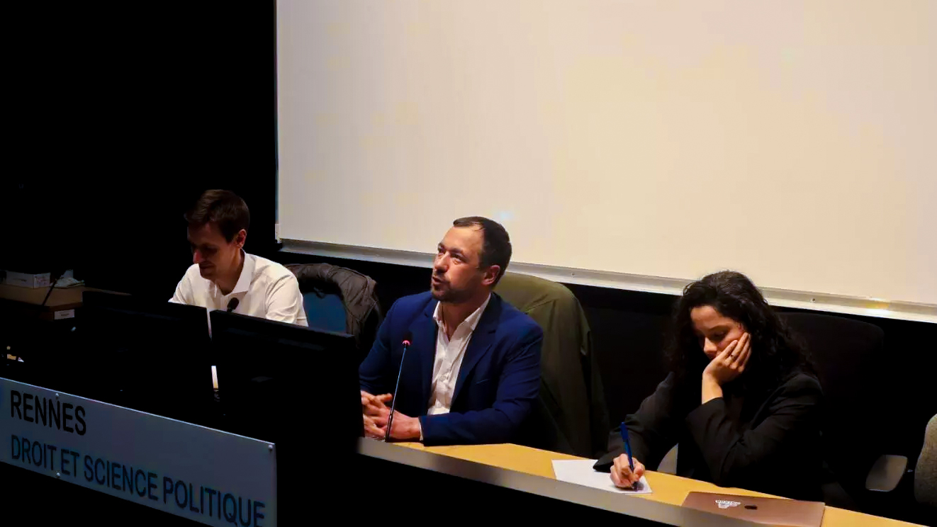 Alan Hervé, professeur à Sciences Po Rennes, directeur de la chaire européenne Jean Monnet et Antoine Oger, directeur exécutif à l'Institut européen pour les politiques environnementales (IEEP), ont donné une conférence sur l'avenir du Pacte vert européen. Celle-ci s’est déroulée à la faculté de droit et de science politique de l'Université de Rennes, avec Kenza Teffahi, doctorante à l’IODE, pour la modération. Cet échange s’inscrit dans le cycle des rendez-vous d’Europe, organisés du 9 au 13 février 2026.
