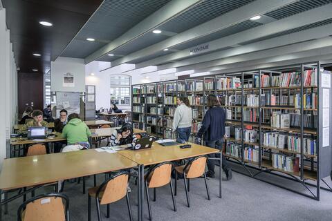 Dans le cadre du projet de restructuration de la bibliothèque de Sciences Po Rennes, l’entièreté de la collection de l’établissement a été déplacée à l’ancien Restaurant Universitaire situé au 106 Bd de la Duchesse Anne.