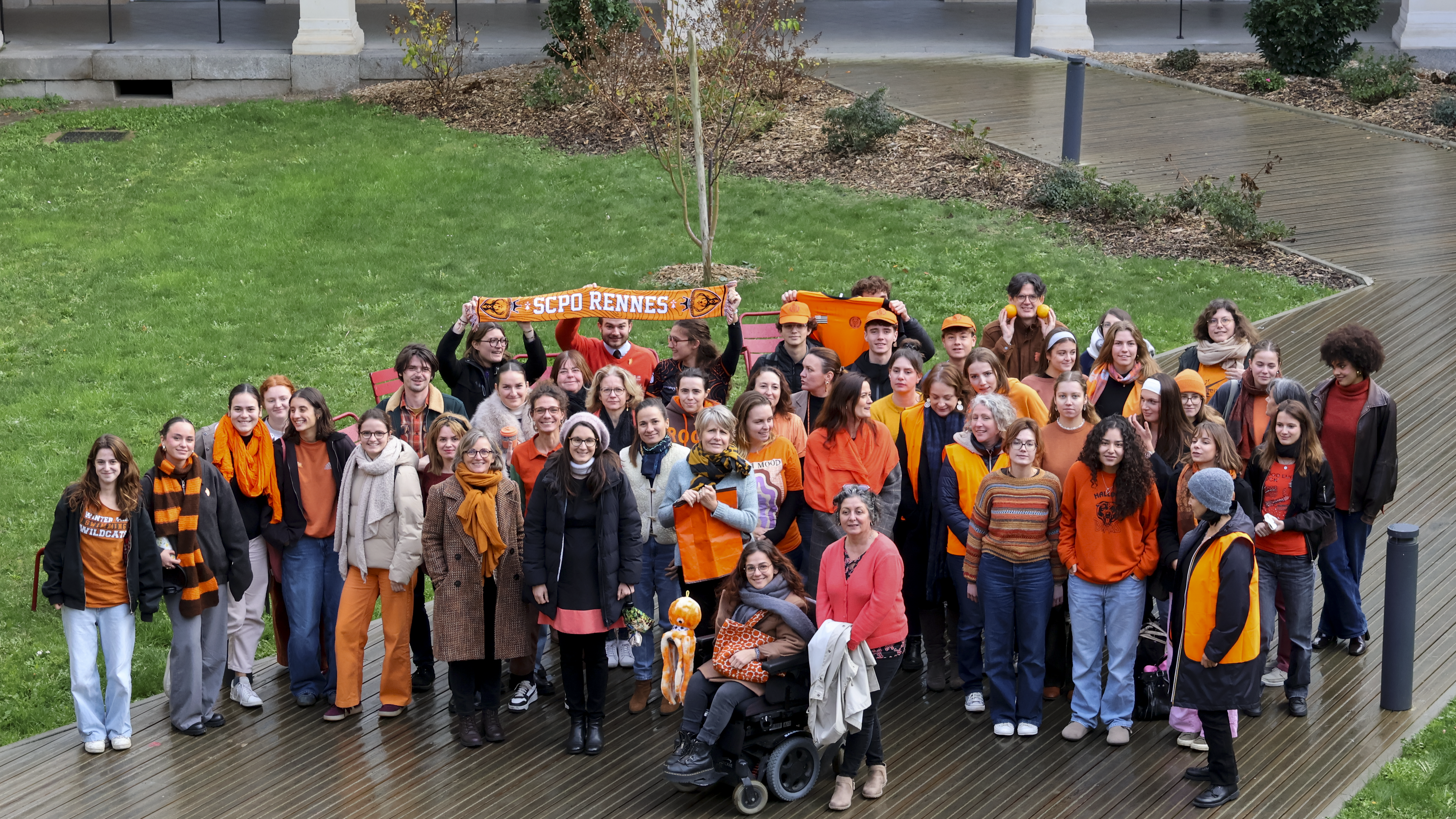 À Sciences Po Rennes, nous affirmons notre soutien en portant ensemble la couleur orange : un signe visible et collectif de notre engagement, pour donner toute sa force à cette mobilisation.