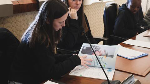 Accueillis par Emmanuelle Rousset, élue du canton de Rennes 1 et vice-présidente déléguée à l’économie sociale et solidaire, à la transition écologique, à l'enseignement supérieur et à la recherche, ainsi qu'à la coordination des politiques transversales, les collégiens ont eu l'opportunité de découvrir le fonctionnement de cette institution clé du département.