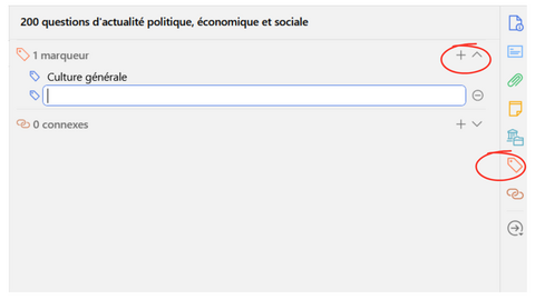 Pour attribuer un marqueur à une référence, sélectionnez votre document. Dans le volet latéral droit, sélectionnez l'étiquette correspondante pour ouvrir la fenêtre des marqueurs. Vous pouvez ajouter vos marqueurs.
