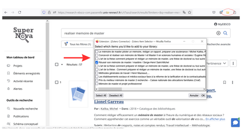 Tout au long de vos recherches, les références que vous allez importer s'ajouteront au fur et à mesure dans Ma bibliothèque.