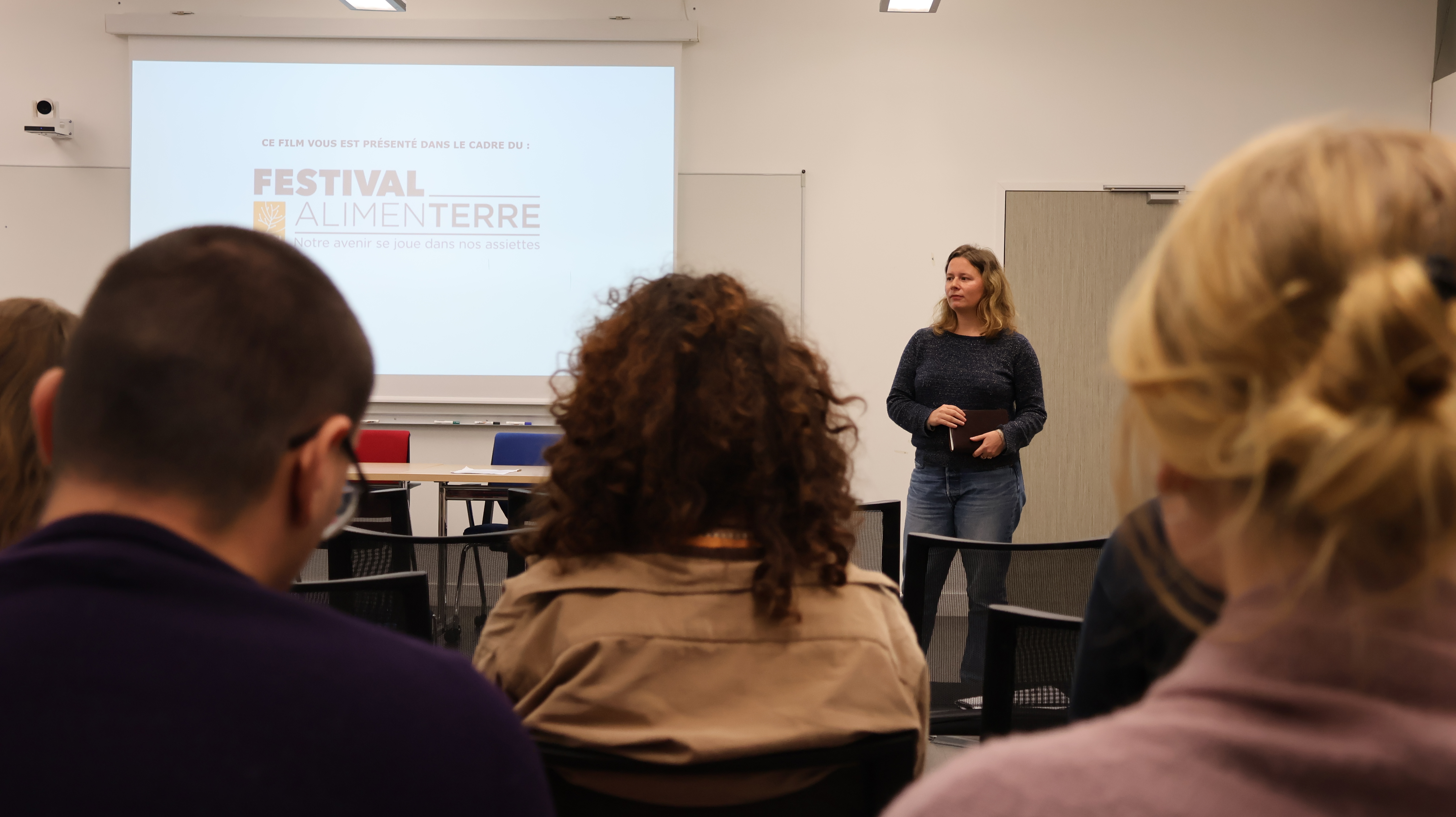 Ce ciné-débat a eu lieu le mardi 25 novembre dans le cadre de l'Agora des transitions, programme culturel du campus de Caen qui propose tout au long de l'année des conférences, des performances artistiques entre autres événements, et du festival Alimenterre de Caen. Durant cette séance ouverte au public et animée par Morgane Esnault, post-doctorante de la chaire APHAT, les participants et participantes ont pu visionner le film "On mange quoi ?" avant d'échanger autour de leurs impressions, et de ce qu'ils voulaient approfondir. L'occasion pour les étudiants et étudiantes du campus et pour les visiteurs et visiteuses d'échanger sur leurs connaissances autour de l'alimentation et des enjeux actuels à Caen et en France.