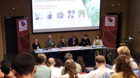 Ces deux jours se sont ouverts sur les discours d’introduction de Dominique Goutte, Conseiller municipal délégué aux Actions en relation avec le pôle d’enseignement supérieur et de recherche, Pablo Diaz, directeur de Sciences Po Rennes, et Nicolas Escach, directeur du campus de Caen de Sciences Po Rennes. Tous trois ont mis en avant l’importance de ce forum pour commencer à dessiner ensemble - élèves, personnel enseignant mais aussi acteurs et actrices des sphères privées et publiques de l’économie - les métiers du futur, ainsi que les formations qu’ils nécessiteront. “Une des caractéristiques de Sciences Po Rennes, et particulièrement du campus de Caen, c’est cette ouverture au monde qui l'entoure” souligne Mr Diaz. Une ouverture au territoire que le campus de Caen a mis en avant en organisant ce forum économique au MoHo, avec pour objectif de développer de nouveaux questionnements sur les mutations de l’économie normande.