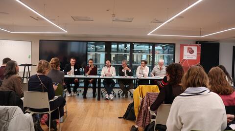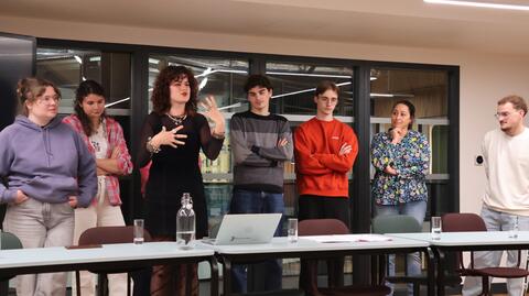 Après une pause repas, l’occasion d’échanger sur les conférences et les concepts évoqués dans la matinée, une dernière table ronde a pris place sur le thème “Gouvernances en transition : vers plus de participation ?” animée par Alexis Alamel, directeur du master InSitu, et en présence d’Anne Pinet, Chargée d'animation et de développement de la Coopérative funéraire Normande , Tera Zaynab, Directrice chez réseau normand de la coopération et la solidarité internationales, Horizons solidaires, Clément Charlot, Responsable de projet, Cité de l'alimentation et Théo Saint-Martin, cofondateur de VeraGrow .